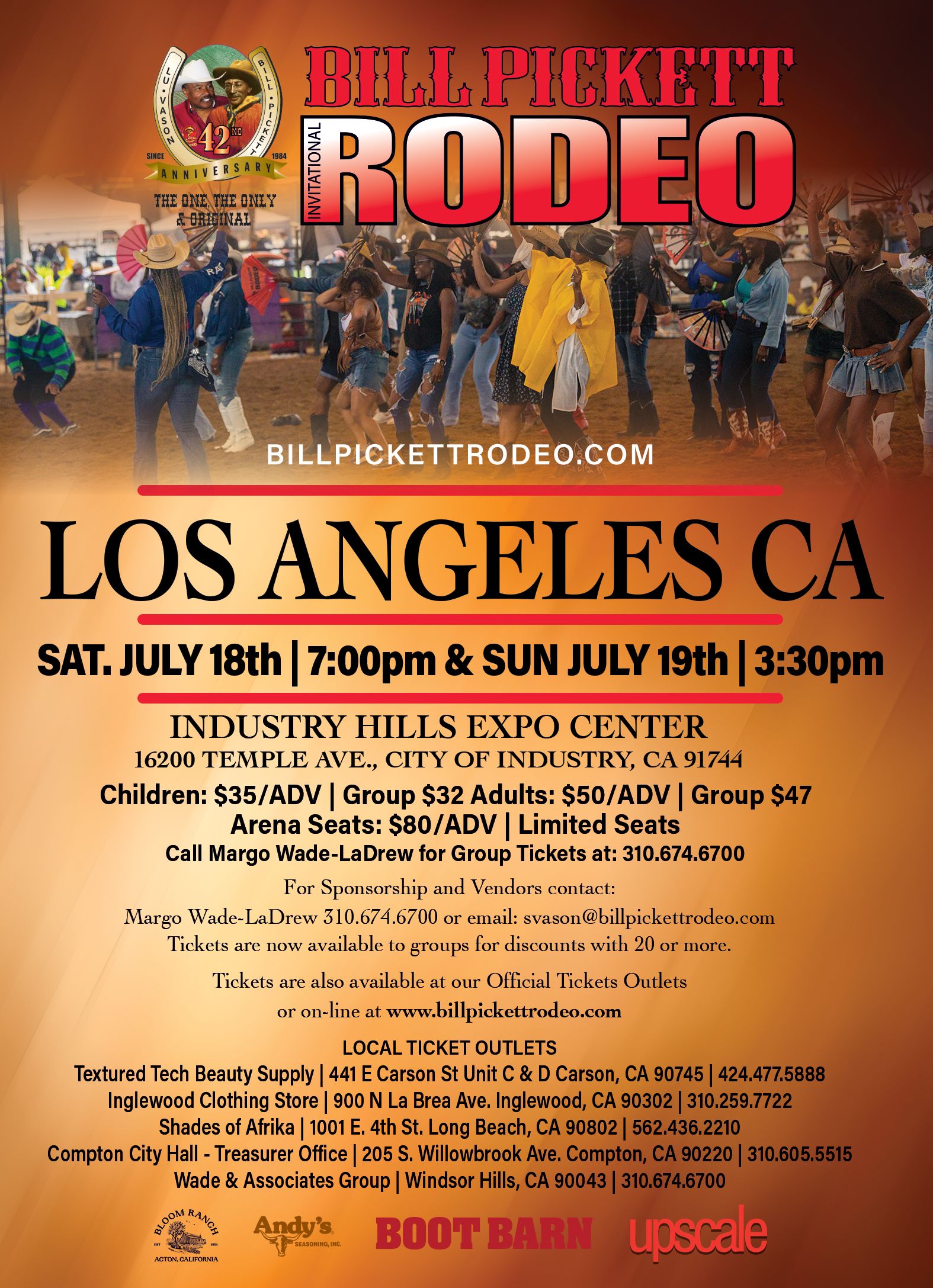 Call 310.674.6700, Wade & Associates Group Outlet to purchase tickets.